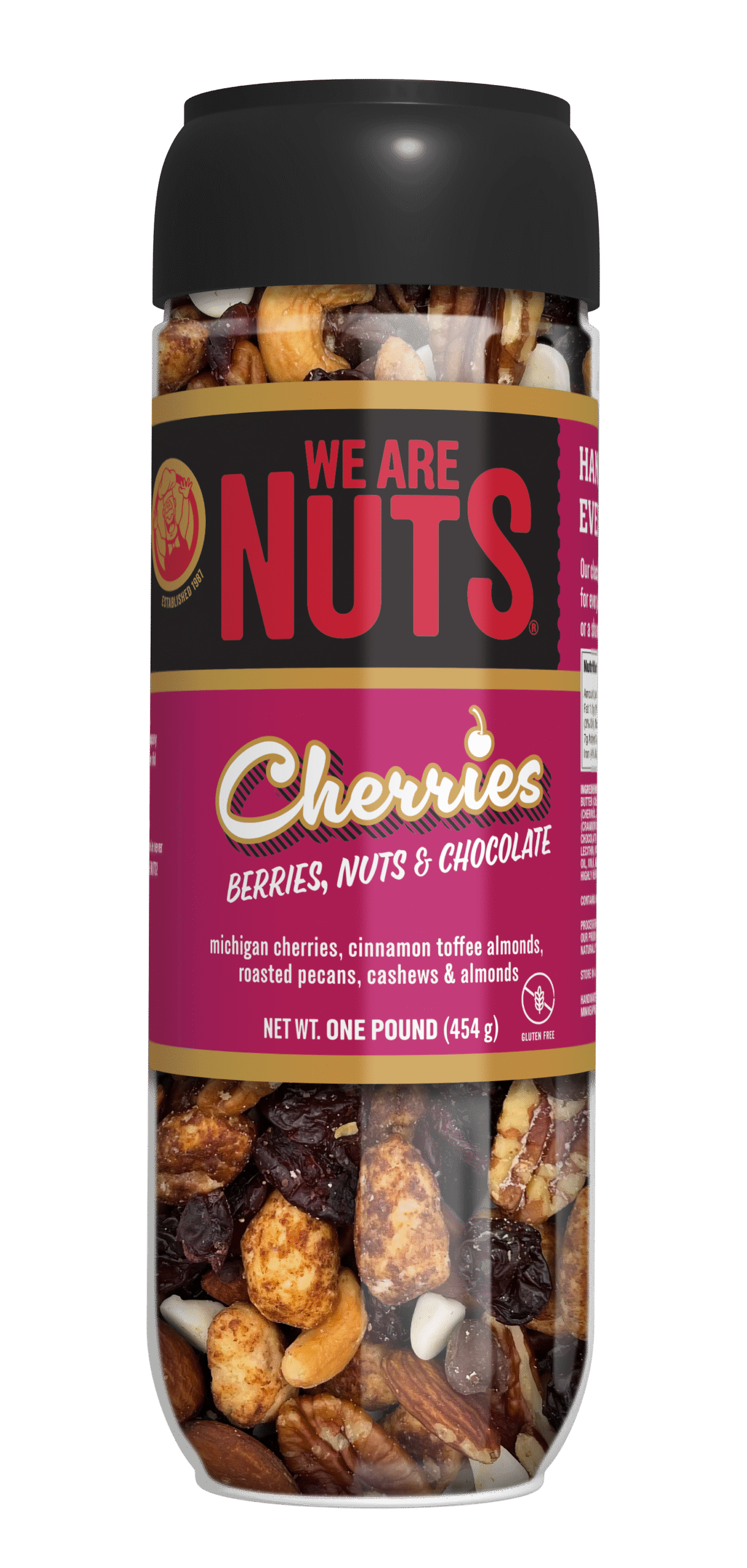 Experience the perfect combination of sweet, nutty, and fruity flavors with our Cherries, Berries, Nuts & Chocolate mix. This 16 oz blend is carefully crafted to offer a deliciously satisfying snack that delights with every bite. Our mix features our signature Cinnamon Toffee Almonds, adding a sweet and crunchy twist, alongside premium Michigan dried cherries and dried cranberries that bring a tart burst of flavor.